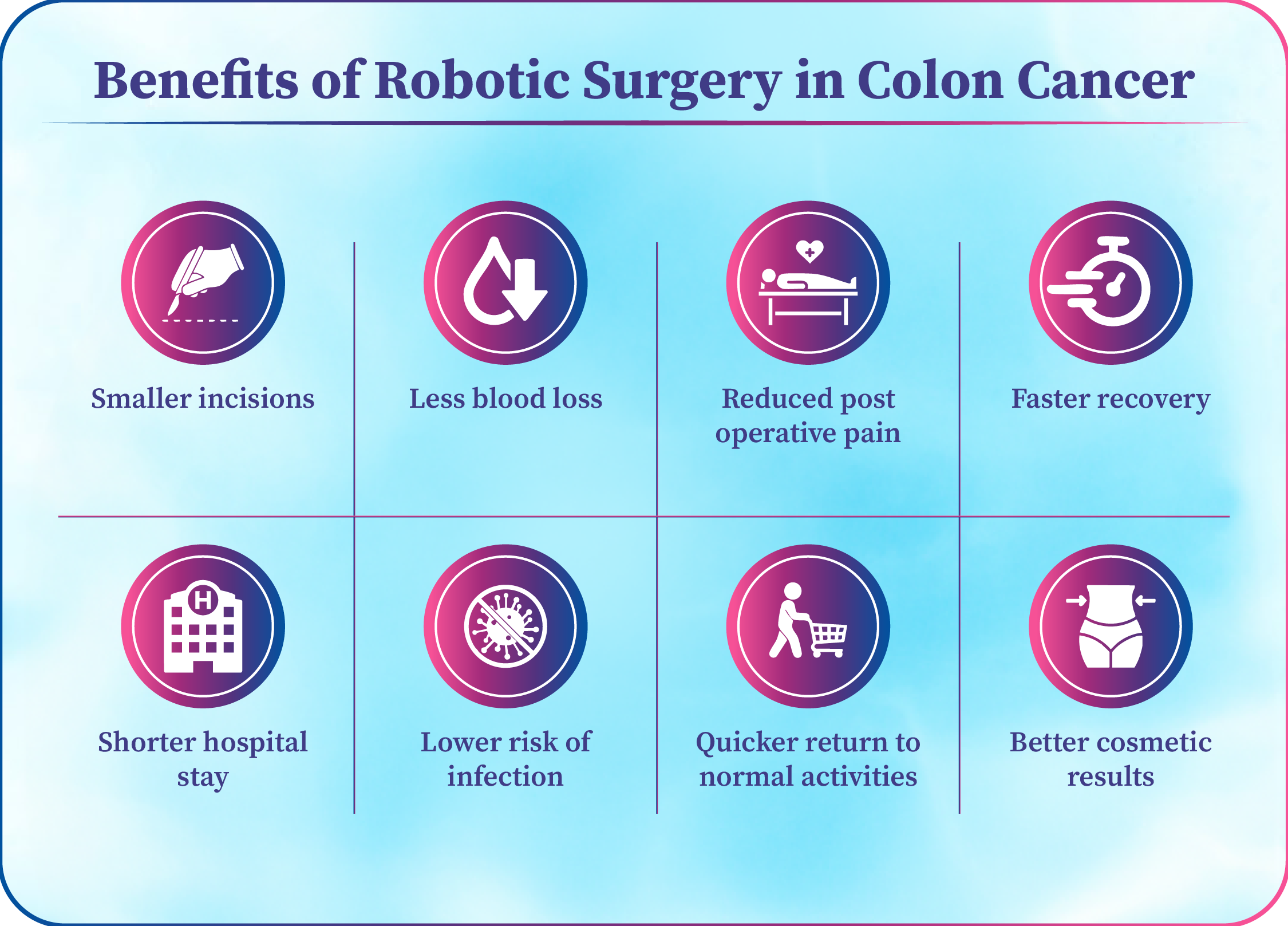 Dr Rajesh Shinde uses advanced surgical techniques including laparoscopic and robotic surgery for colon cancer to ensure: