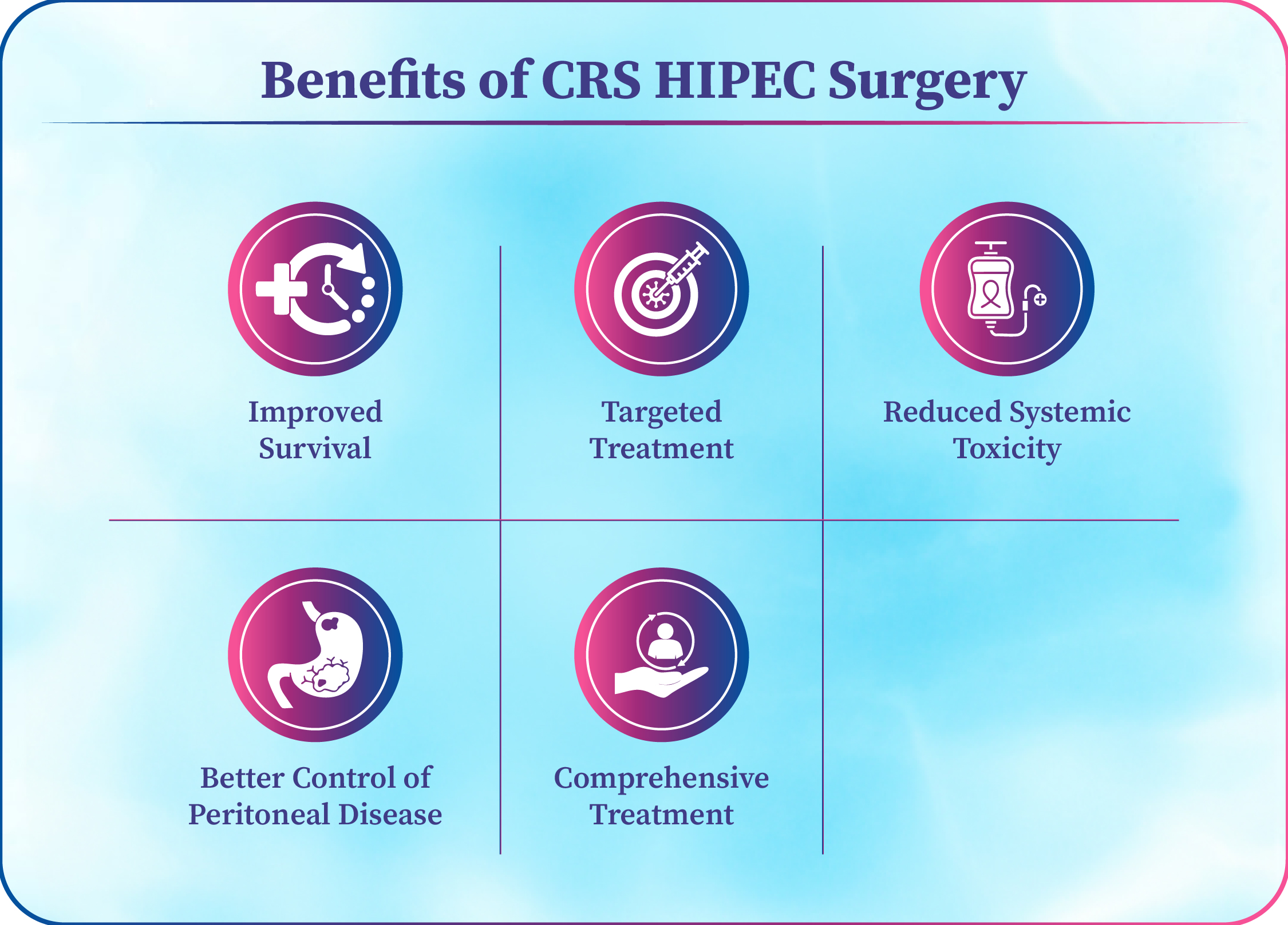 Better Control of Peritoneal Disease: CRS HIPEC helps prevent cancer recurrence inside the abdomen.