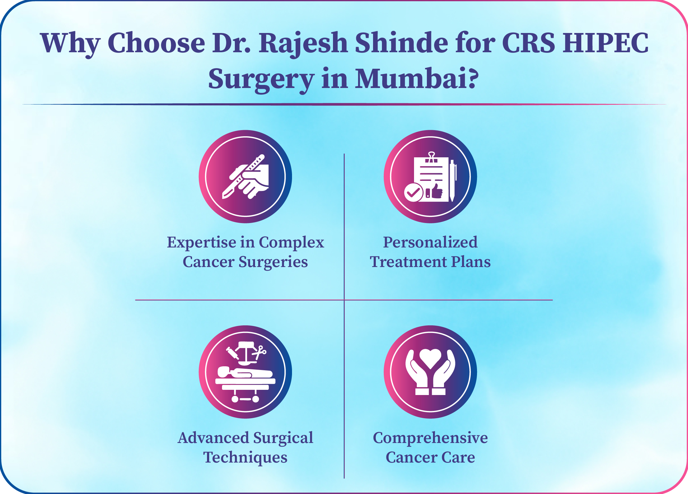 Dr. Rajesh Shinde, a leading surgical oncologist in Mumbai, provides advanced CRS HIPEC treatment with a focus on patient safety, modern surgical techniques, and personalized care.
