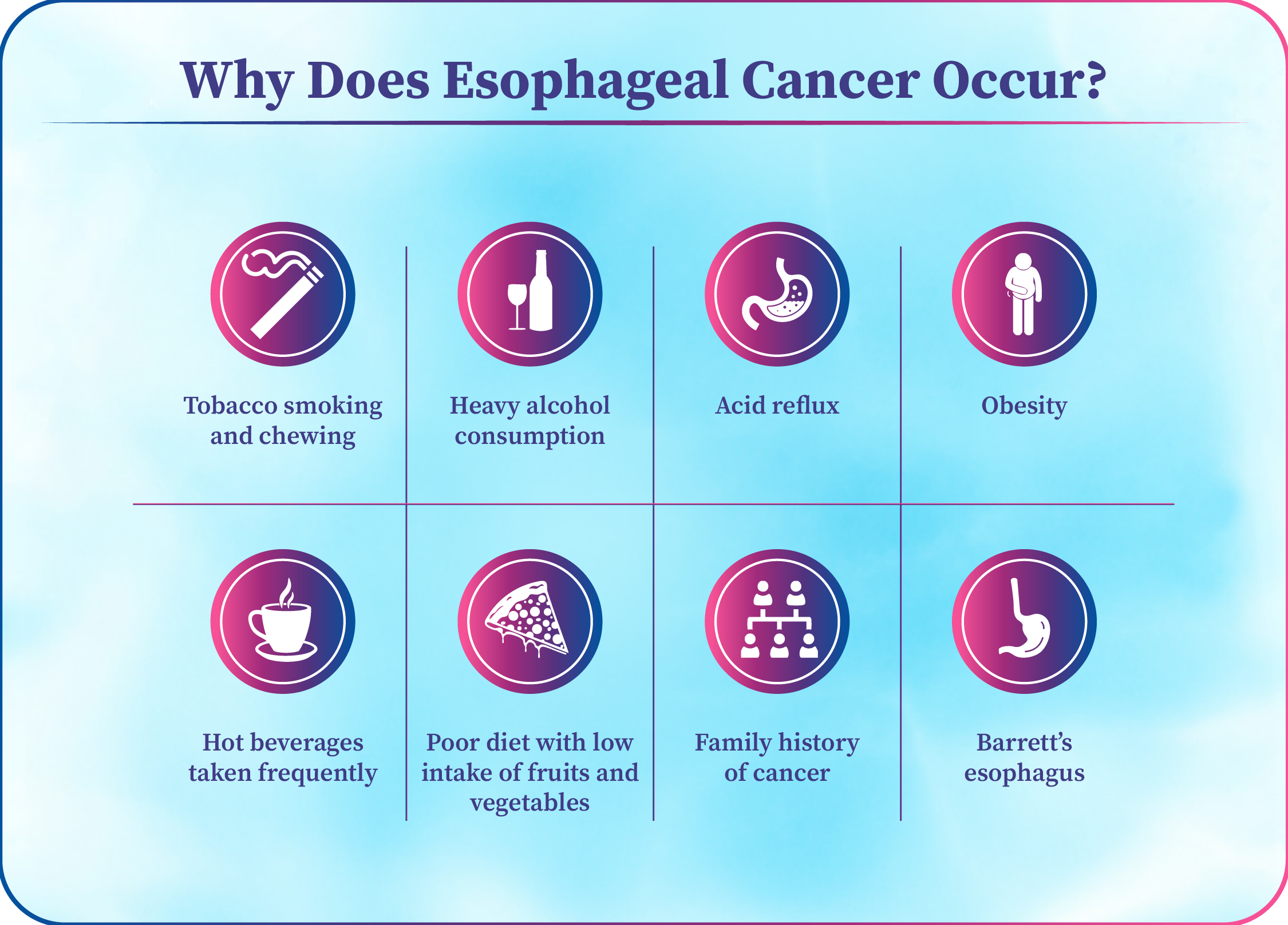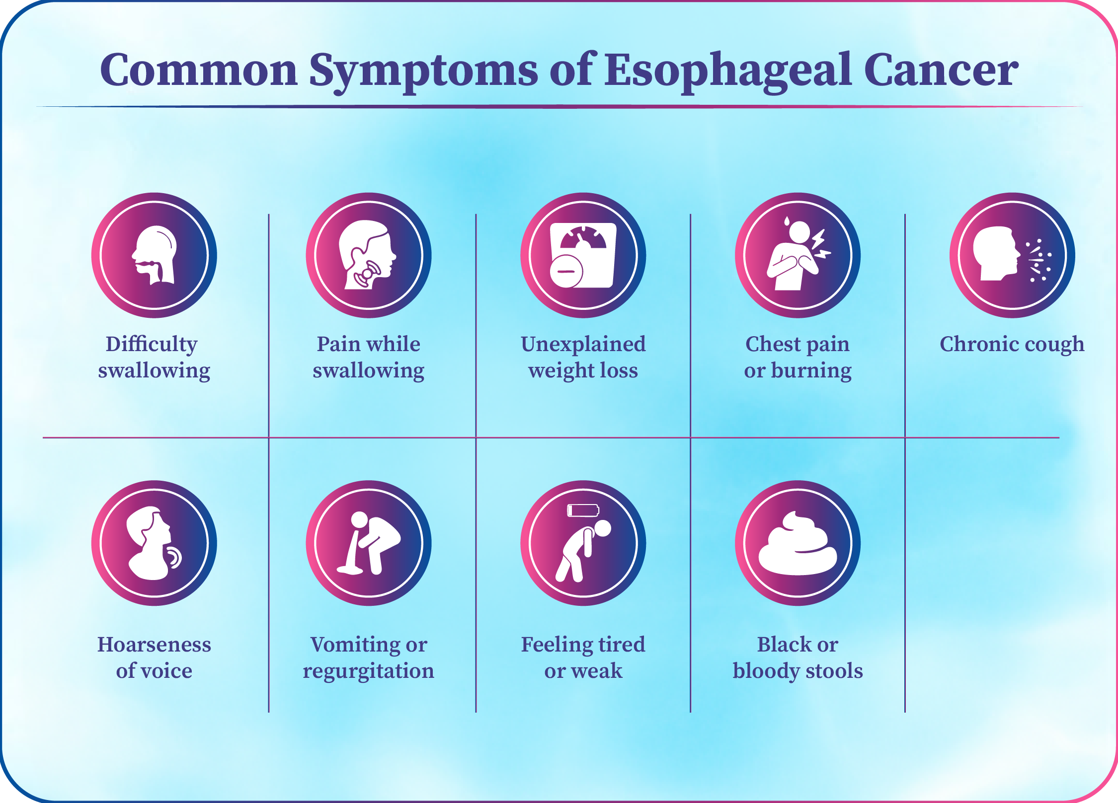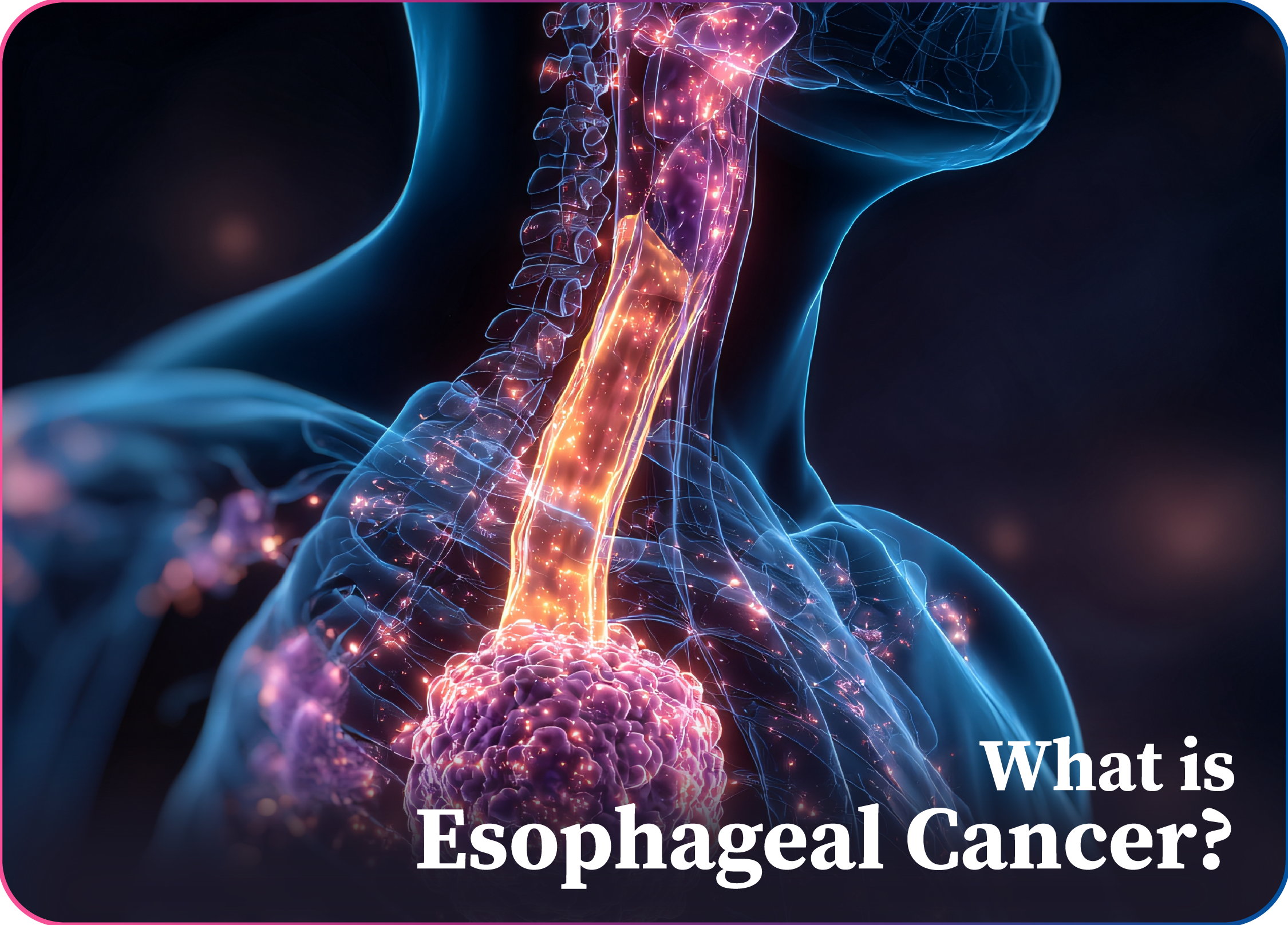The esophagus is a long, muscular tube that connects your throat to your stomach. Esophageal cancer starts when abnormal cells grow uncontrollably in the lining of this tube. Over time, these cells can form a tumor and may spread to nearby organs or other parts of the body if not treated in time.