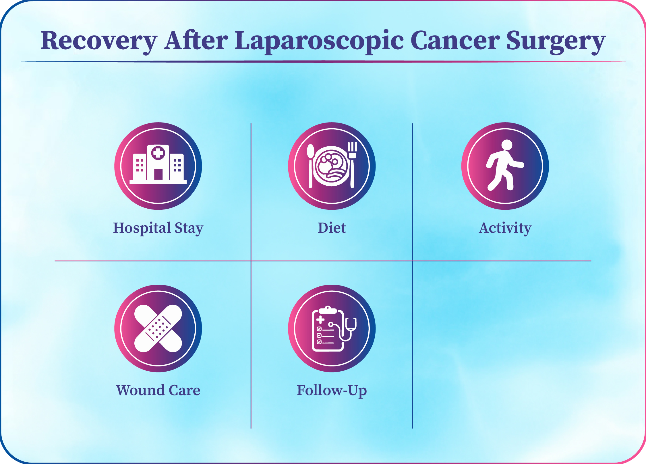 Hospital Stay: Usually 3–7 days depending on surgery type.