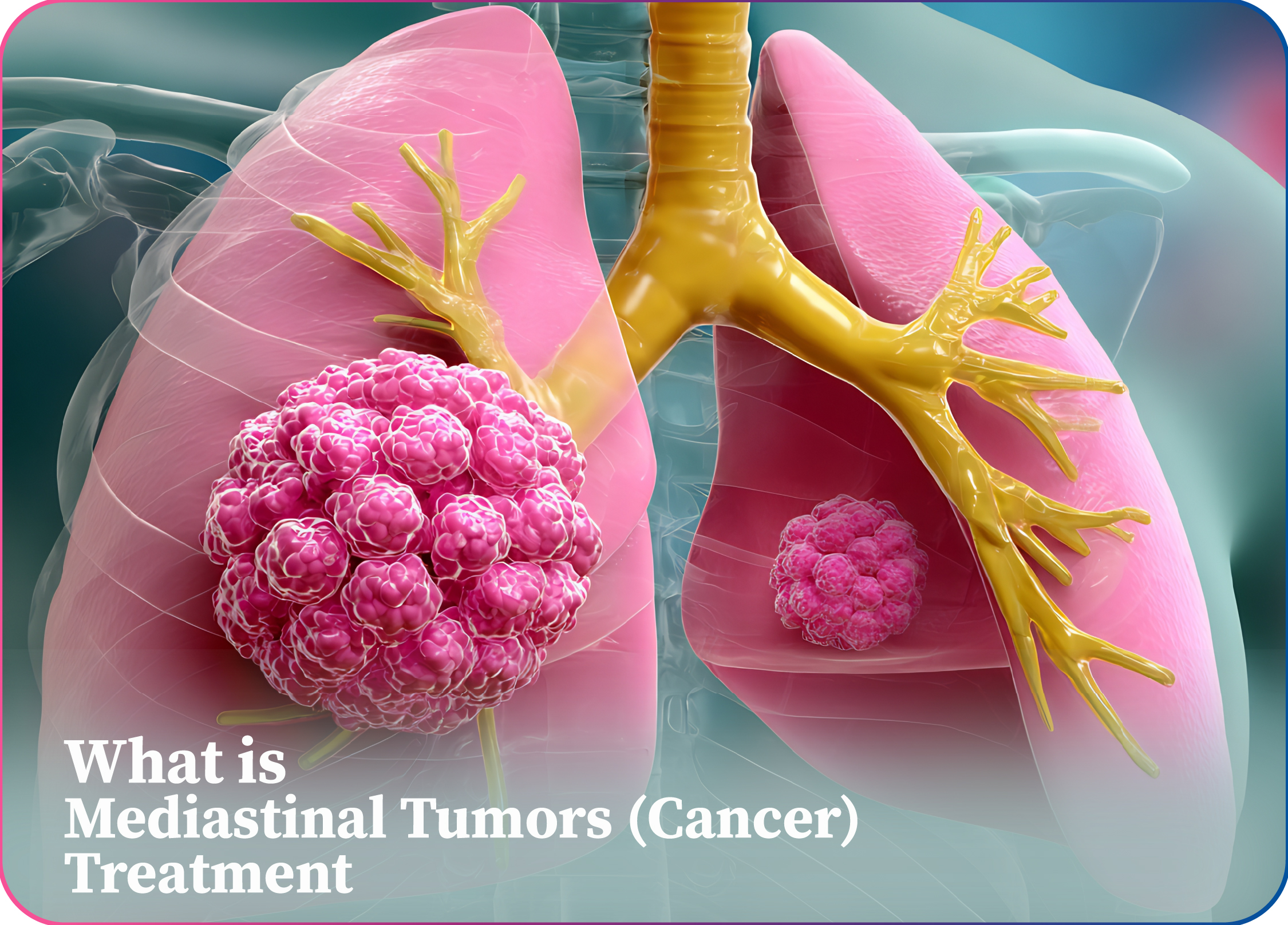 Mediastinal tumors are abnormal growths that develop in the mediastinum, the central area of the chest located between the lungs. This space contains vital organs such as the heart, thymus gland,lymph nodes, windpipe (trachea), food pipe (esophagus), and major blood vessels.